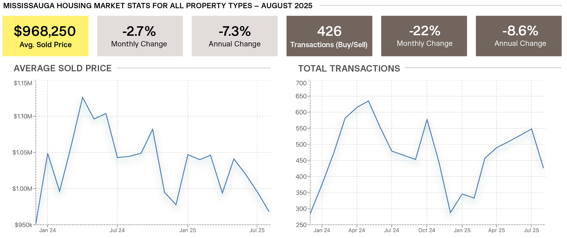 It’s a Buyers market- plain and simple. August 2025's sales-to-new-listings ratio (SNLR) was 37%, indicating a buyer's market. The amount of available listings is building (SNLR below 50% = Buyers market and over 50% = Sellers market). This is a slight increase from the 35% SNLR that the GTA saw in July 2025 and 33% in June. (Of note- an uptick in these numbers shows there is a trend beginning which should start to swing to a sellers market as we move into Spring 2026).