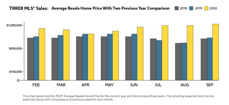 Mississauga September 2020 - Last month we reported record sales numbers for August 2020 in the GTA as well as Mississauga. September has broken some new records with a 42% increase in unit sales over September 2019 and a 14% increase in average price. Of note, there was a surge of activity in the suburbs and regions surrounding the GTA and the 3rd straight month of record sales.